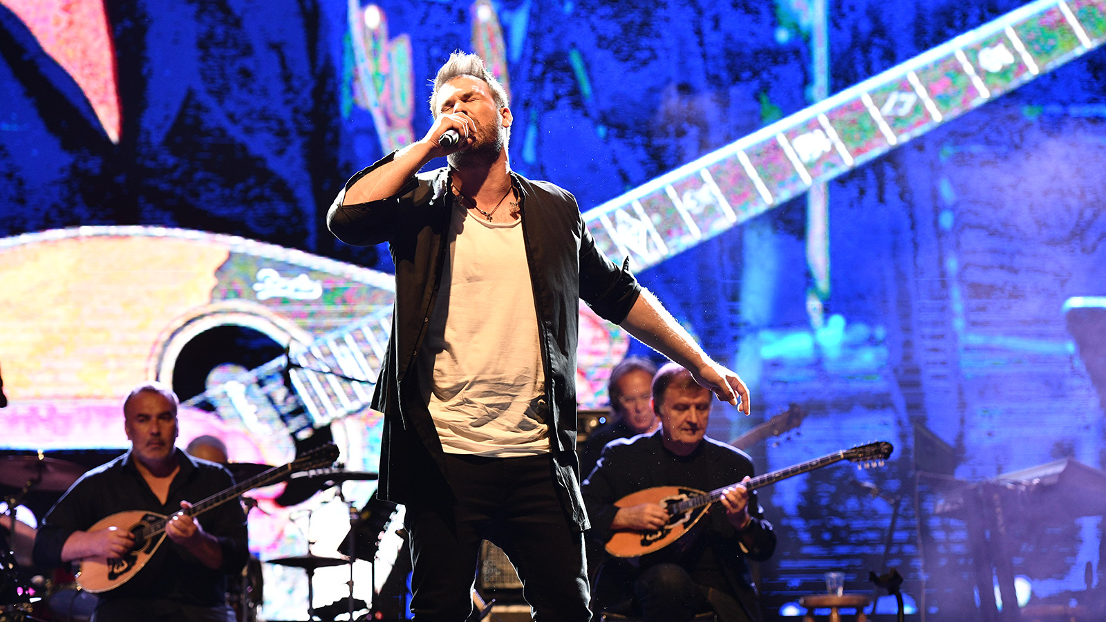 Με ένα βίντεο με την ερμηνεία του Δημήτρη Μητροπάνου στο «Ακου» του Τ. Μουσαφίρη άρχισε η συναυλία για τον σπουδαίο ερμηνευτή.