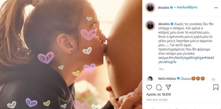 O Δημήτρης Σκουλός ανήρτησε μία πολύ τρυφερή φωτογραφία με την κόρη του να φιλά τη φουσκωμένη κοιλίτσα της μαμάς της.