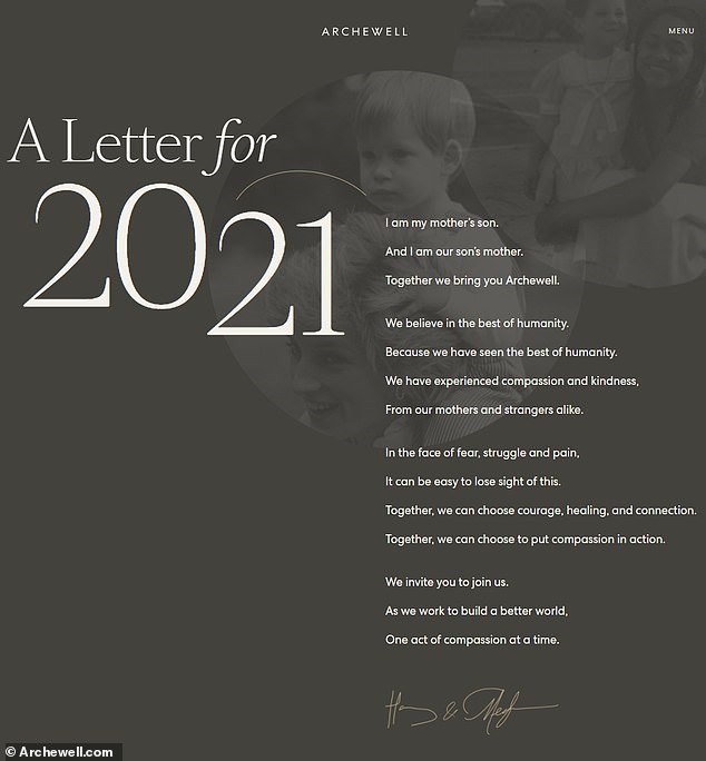 Ο πρίγκιπας Χάρι μαζί με τη σύζυγό του Μέγκαν Μαρκλ παρουσίασαν το site για τον μη κερδοσκοπικό οργανισμό τους Archwell , με τον Δούκα του Σάσεξ να χρησιμοποιεί στο εισαγωγικό του σημείωμα τη φράση “Είμαι ο γιος της μητέρας μου” και τη συνοδεύει με τη φωτογραφία της μητέρας του που τον μεταφέρει στους ώμους της.