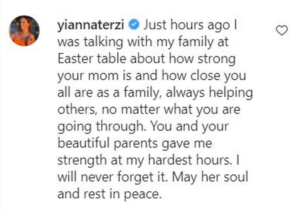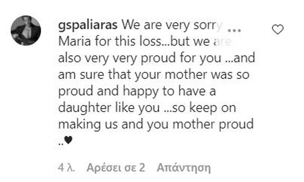 «RIP mom. Ο Θεός την αγαπούσε τόσο πολύ που την πήρε μαζί του ανήμερα στο ορθόδοξο Πάσχα.