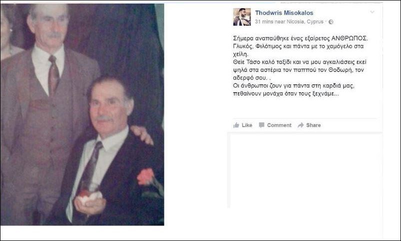 Η Ελένη Μενεγάκη και η οικογένειά της περνούν δύσκολες στιγμές, καθώς σήμερα έφυγε από την ζωή ένας δικός τους άνθρωπος.Ο αδελφός της παρουσιάστριας, Θοδωρής Μισόκαλος, ανέβασε μια φωτογραφία στον προσωπικό του λογαριασμό στο facebook, γράφοντας χαρακτηριστικά «Σήμερα αναπαύθηκε ένας εξαίρετος άνθρωπος. Γλυκός, φιλότιμος και πάντα με το χαμόγελο στα χείλη. Θείε Τάσο καλό ταξίδι και να μου αγκαλιάσεις εκεί ψηλά στα αστέρια τον παππού τον Θοδωρή, τον αδερφό σου… Οι άνθρωποι ζουν για πάντα στη καρδιά μας, πεθαίνουν μονάχα όταν τους ξεχνάμε…»