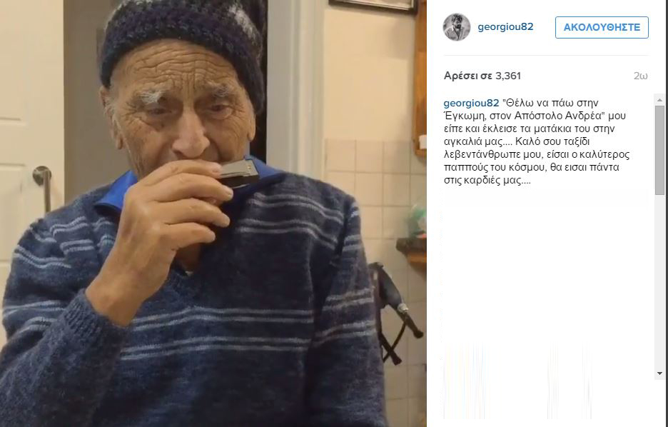“Θέλω να πάω στην Έγκωμη, στον Απόστολο Ανδρέα” μου είπε και έκλεισε τα ματάκια του στην αγκαλιά μας…. Καλό σου ταξίδι λεβεντάνθρωπε μου, είσαι ο καλύτερος παππούς του κόσμου, θα είσαι πάντα στις καρδιές μας” σχολίασε ο ηθοποιός.