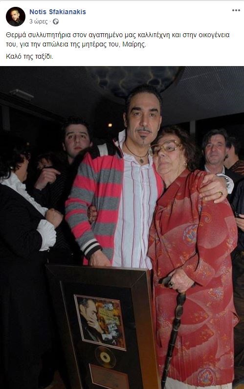 «Θερμά συλλυπητήρια στον αγαπημένο μας καλλιτέχνη και στην οικογένεια του, για την απώλεια της μητέρας του, Μαίρης. Καλό της ταξίδι», ήταν η λεζάντα κάτω από μία φωτογραφία του γνωστού τραγουδιστή με την μητέρα του.