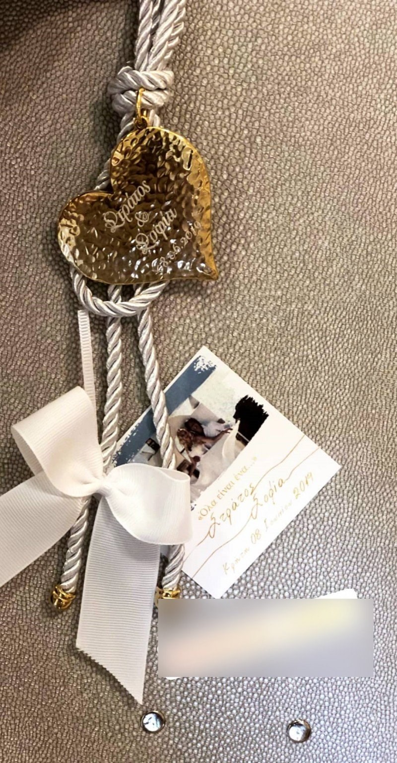 Ο μεγάλος έρωτας του ζευγαριού που επισφραγίστηκε με την γαμήλια τελετή στα Χανιά φαίνεται και από τις μπομπονιέρες στις οποίες υπάρχει ένα χρυσό μενταγιόν σε σχήμα καρδιάς, όπου αναγράφει πάνω «Στράτος και Σοφία» και την ημερομηνία του γάμου τους.