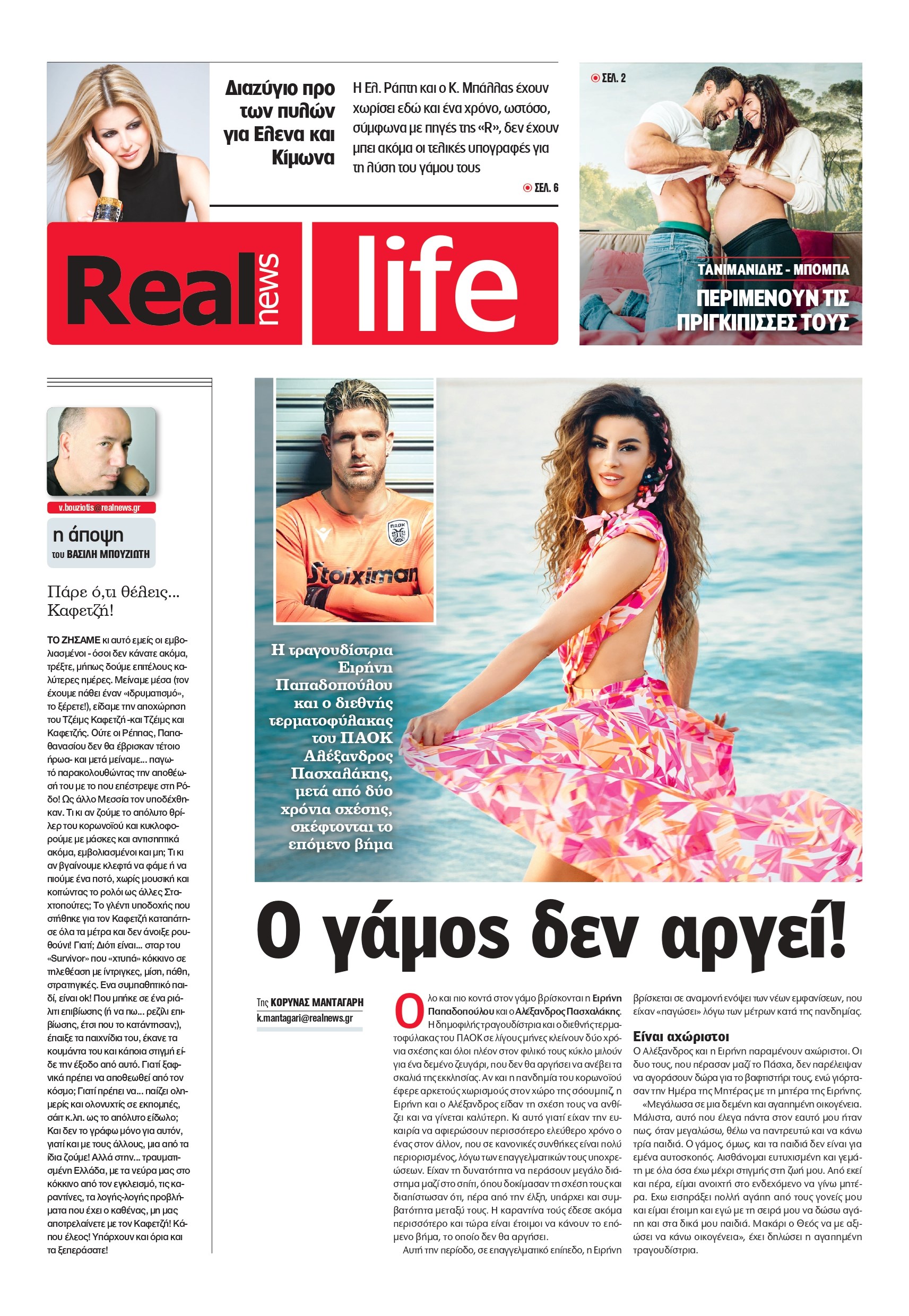 Η δημοφιλής τραγουδίστρια και ο διεθνής τερματοφύλακας του ΠΑΟΚ σε λίγους μήνες κλείνουν δύο χρόνια σχέσης και όλοι πλέον στον φιλικό τους κύκλο μιλούν για ένα δεμένο ζευγάρι, που δεν θα αργήσει να ανέβει τα σκαλιά της εκκλησίας. Αν και η πανδημία του κορονοϊού έφερε αρκετούς χωρισμούς στον χώρο της σόουμπιζ, η Ειρήνη και ο Αλέξανδρος είδαν τη σχέση τους να ανθίζει και να γίνεται καλύτερη. Κι αυτό γιατί είχαν την ευκαιρία να αφιερώσουν περισσότερο ελεύθερο χρόνο ο ένας στον άλλον, που σε κανονικές συνθήκες είναι πολύ περιορισμένος, λόγω των επαγγελματικών τους υποχρεώσεων. Είχαν τη δυνατότητα να περάσουν μεγάλο διάστημα μαζί στο σπίτι, όπου δοκίμασαν τη σχέση τους και διαπίστωσαν ότι, πέρα από την έλξη, υπάρχει και συμβατότητα μεταξύ τους. Η καραντίνα τούς έδεσε ακόμα περισσότερο και τώρα είναι έτοιμοι να κάνουν το επόμενο βήμα, το οποίο δεν θα αργήσει.