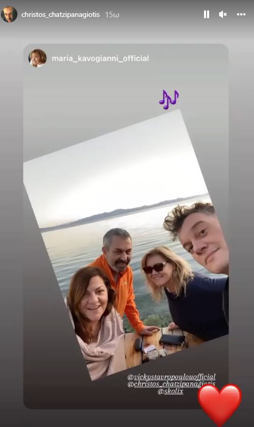 Είναι γνωστό ότι η Βίκυ Σταυροπούλου με τον Χρήστο Χατζηπαναγιώτη έχουν στενή φιλία με την Μαρία Καβογιάννη, η οποία διατηρεί εξοχικό στο Πήλιο. Οι αγαπημένοι ηθοποιοί πόζαραν στον φακό για μία selfie από τις βόλτες τους στα Καλά Νερά.