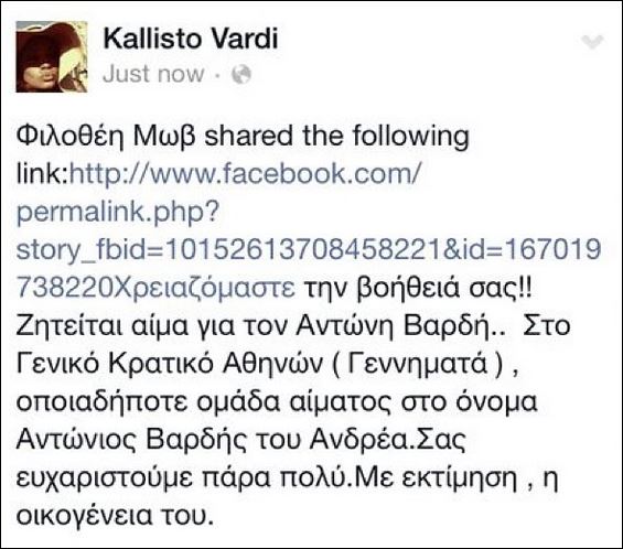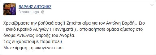 Έκκληση για αίμα από την οικογένεια Βαρδή