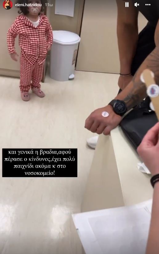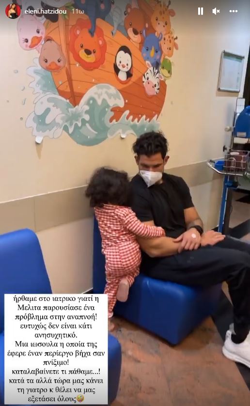 «Ήρθαμε στο Iατρικό γιατί η Μελίτα παρουσίασε ένα πρόβλημα στην αναπνοή! Ευτυχώς δεν είναι κάτι ανησυχητικό. Μια ιωσούλα, η οποία της έφερε ένα περίεργο βήχα σαν πνίξιμο. Καταλαβαίνετε τι πάθαμε… Κατά τα άλλα τώρα μας κάνει τη γιατρό και θέλει να μας εξετάσει όλους. Και γενικά η βραδιά, αφού πέρασε ο κίνδυνος έχει πολύ παιχνίδι ακόμα και στο νοσοκομείο» έγραψε η Ελένη Χατζίδου.