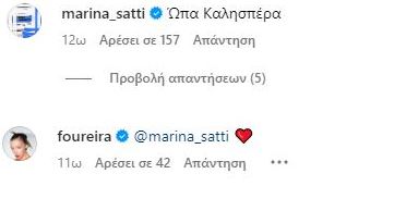 Όπως ήταν φυσικό, η τραγουδίστρια έλαβε πολλά αποθεωτικά σχόλια κάτω από την δημοσίευσή της. Ανάμεσα στα σχόλια ξεχωρίζει εκείνο της Μαρίνας Σάττι, η οποία έγραψε: «Ώπα καλησπέρα».