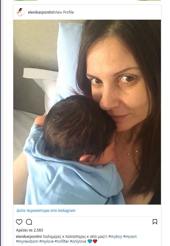 Η Ελένη Καρποντίνη ανέβασε στον προσωπικό της λογαριασμό στο instagram μία τρυφερή φωτογραφία με τον νεογέννητο γιο της! Η παρουσιάστρια λάμπει από ευτυχία…
