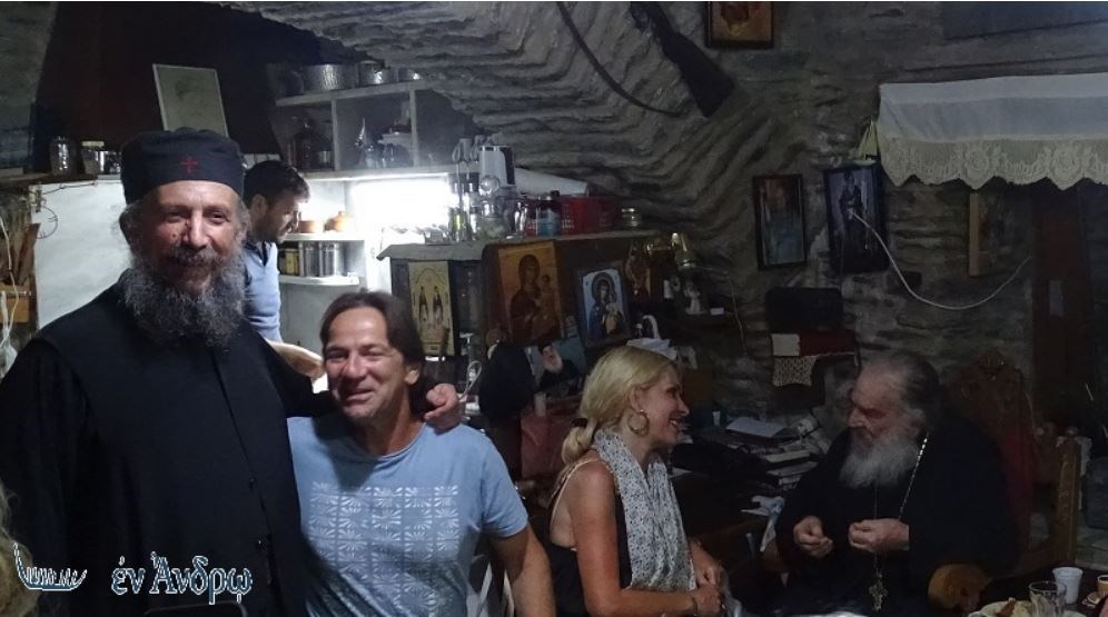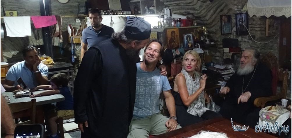 Στην Ιερά Μονή Παναχράντου – Αγίου Παντελεήμονος στην Άνδρο βρέθηκε το απόγευμα της Κυριακής η Ελένη Μενεγάκη μαζί με τον Μάκη Παντζόπουλο και τη μητέρα της. Η γνωστή παρουσιάστρια μπήκε διακριτικά από την πίσω πόρτα του μοναστηριού που γιορτάζει σήμερα και δέχτηκε να φωτογραφηθεί για φίλους και κατοίκους που ήταν εκεί.