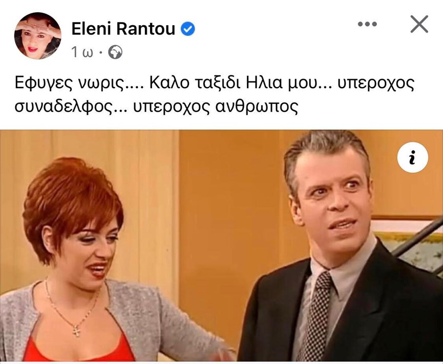 «Έφυγες νωρίς. Καλό ταξίδι Ηλία μου. Υπέροχος συνάδελφος. Υπέροχος άνθρωπος», έγραψε στην ανάρτηση που έκανε στον προσωπικό της λογαριασμό η ηθοποιός.