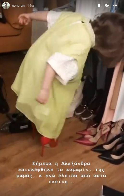 Συγκεκριμένα, η παρουσιάστρια της εκπομπής “Mega Καλημέρα”, πήρε μαζί της στη δουλειά την κόρη της και εκείνη βρήκε ευκαιρία να μπει στο καμαρίνι της. Σε βίντεο που δημοσίευσε η Ελεονώρα Μελέτη, η μικρή Αλεξάνδρα φαίνεται να έχει φορέσει τα ρούχα της μαμάς της και να προσπαθεί ν’ ανέβει πάνω στις ψηλοτάκουνες κόκκινες γόβες, οι οποίες μάλλον την εντυπωσίασαν.