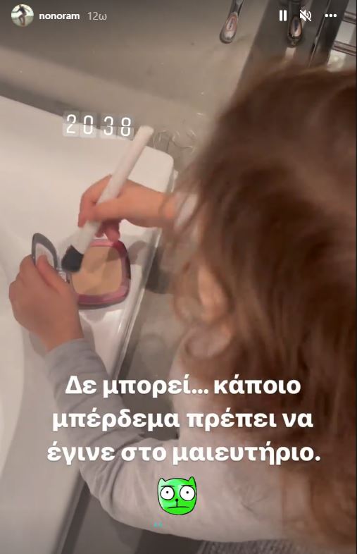 Ένα από τα στιγμιότυπα που προκάλεσαν άφθονο γέλιο ήταν όταν βρήκε την μικρή της κόρη Αλεξάνδρα μπροστά στον καθρέπτη να κάνει μακιγιάζ. “Δεν μπορεί… κάποιο μπέρδεμα πρέπει να έγινε στο μαιευτήριο” σχολίασε η Ελεονώρα Μελέτη καθώς στην ίδια δεν αρέσει να βάφεται. Άλλωστε όταν δεν έχει επαγγελματικές υποχρεώσεις, είναι εντελώς απλή στην καθημερινότητά της.