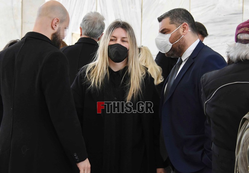 Συντετριμμένη η Ελισάβετ Μουτάφη, αποχαιρέτησε τον πατέρα της, έχοντας στο πλευρό της τον σύζυγό της Μάνο Νιφλή.