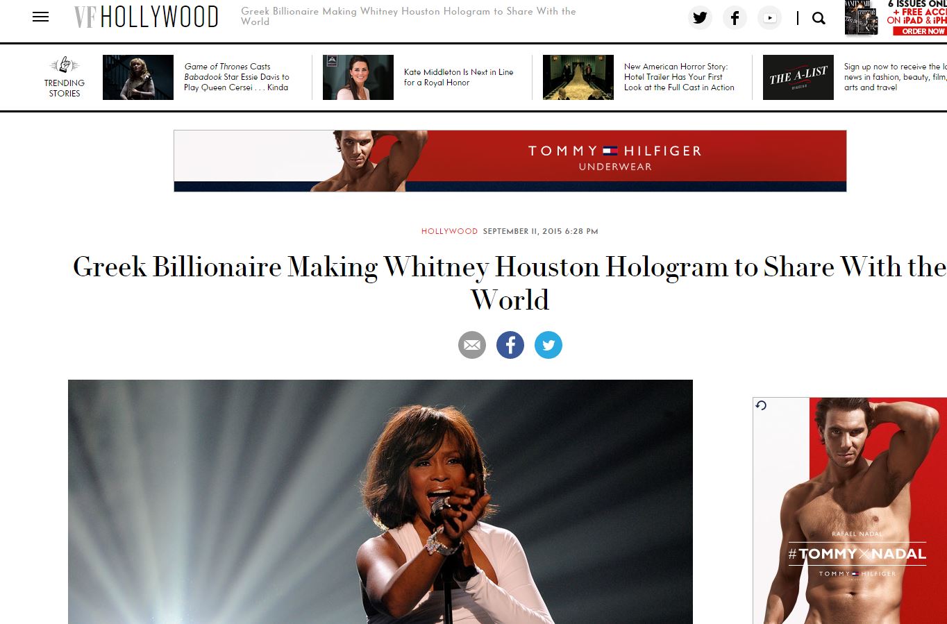 Η οικογένεια της Γουίτνεϊ Χιούστον έδωσε στον Έλληνα δισεκατομμυριούχο Άλκη Δαυίδ την άδεια να δημιουργήσει το ολόγραμμά της αξέχαστης τραγουδίστριας που “έφυγε” από τη ζωή πριν τρία χρόνια.