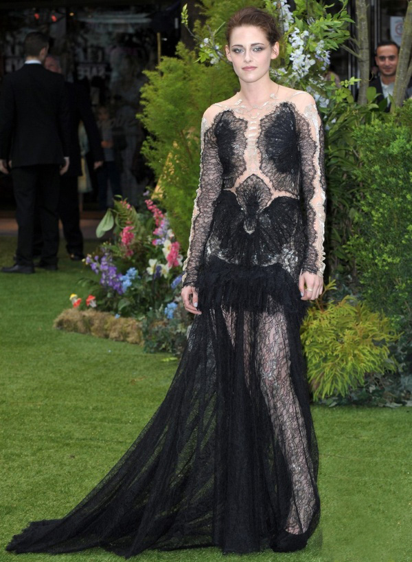Και οι δύο σταρ έλαμπαν στην παγκόσμια πρεμιέρα της νέας τους ταινίας Snow White and the Huntsman το βράδυ της Δευτέρας στην Εmpire Leicester Square του Λονδίνου, που στρώθηκε ολόκληρη με γκαζόν, σαν να ήταν κάποιο παραμυθένιο σκηνικό από την ταινία. H Charleze Theron φόρεσε μια μάξι, μαύρη τουαλέτα από διαφάνεια Christian Dior που τη συνδύασε με μαύρο σορτσάκι και ένα nude tube στο επάνω μέρος. Ενδιαφέρουσα αντίθεση τα τυρκουάζ σκουλαρίκια και δαχτυλίδι του οίκου Solange Azagury Partridge
