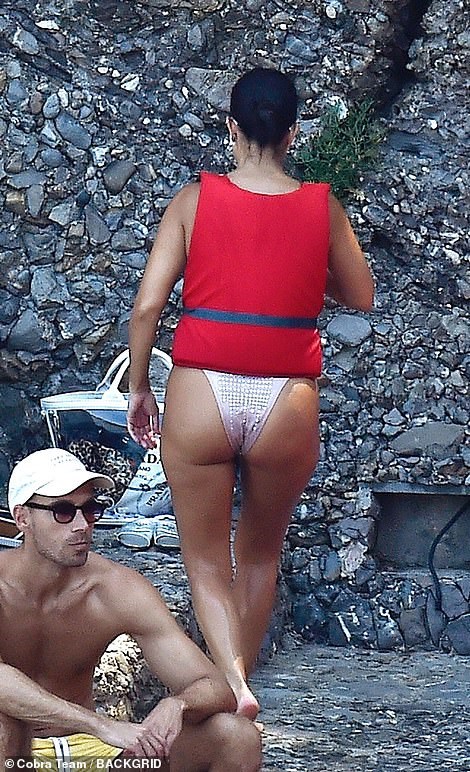 Πάντως, τις εντυπώσεις έκλεψαν το αποκαλυπτικό μπικίνι της που ήταν στολισμένο με κρύσταλλα αλλά και η αψεγάδιαστη σιλουέτα της. Η μητέρα τριών παιδιών δείχνει πως βρίσκεται στην καλύτερη φόρμα με τις θηλυκές καμπύλες της και το καλογυμνασμένο κορμί της.