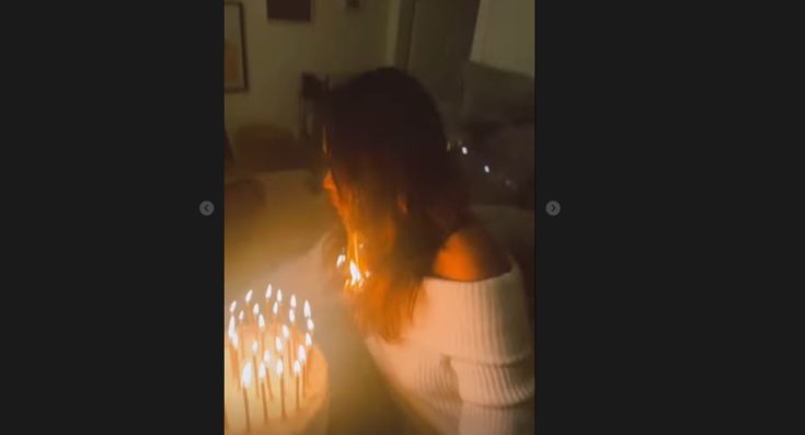 Η καλλιτέχνιδα επέλεξε για τα γενέθλιά της ένα μακρύ λευκό φόρεμα, ενώ είχε ισιώσει τα μαλλιά της, τα οποία άφησε κάτω. Στιγμιότυπα από το πάρτι της ανέβασε στο προφίλ της στο Instagram, με την μορφή των stories. Μεταξύ αυτών είναι και ένα βίντεο από την στιγμή που σβήνει τα κεράκια στην τούρτα της.