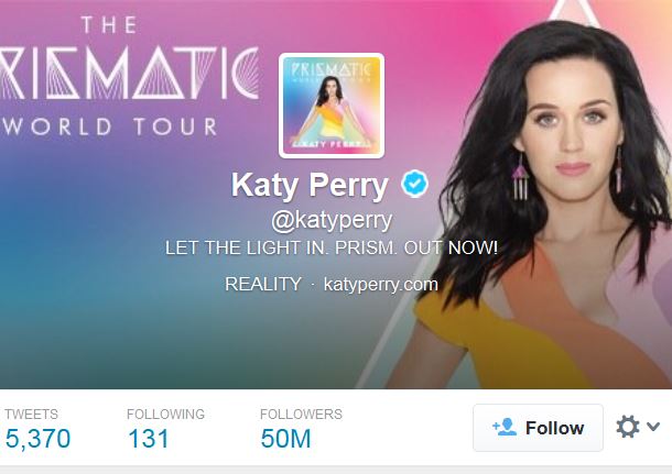 Ούτε ο Πάπας Φραγκίσκος, ούτε ο Μπαράκ Ομπάμα. Ο πρώτος χρήστης του twitter που έσπασε το φράγμα των 50 εκατομμυρίων followers, είναι η Κέιτι Πέρι.