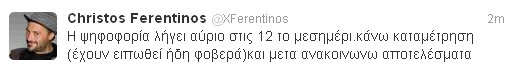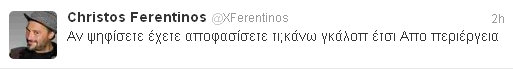 Ο Χρήστος Φερεντίνος μάλλον ανήκει και αυτός στους αναποφάσιστους… Δείτε τι έγραψε στο Twitter του.