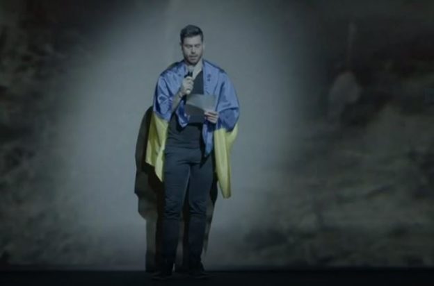 Πριν ξεκινήσει η παράσταση του «Οθέλλου» σε μια αίθουσα που ήταν γεμάτη από θεατές, στην Εθνική Λυρική Σκηνή, ο χορευτής Γιάννης Μητράκης, εμφανίστηκε στη σκηνή τυλιγμένος με την ουκρανική σημαία και ζήτησε από το κοινό να τηρήσει ενός λεπτού σιγή για τα θύματα αυτού του πολέμου.