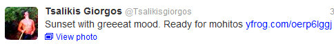 Το twitter έχει γίνει η γέφυρα εκείνων που κάνουν διακοπές και εκείνων που έχουν μείνει στις πόλεις! Ο Γιώργος Τσαλίκης μας δίνει μια καλοκαιρινή εικόνα. Γράφει στο twitter του: