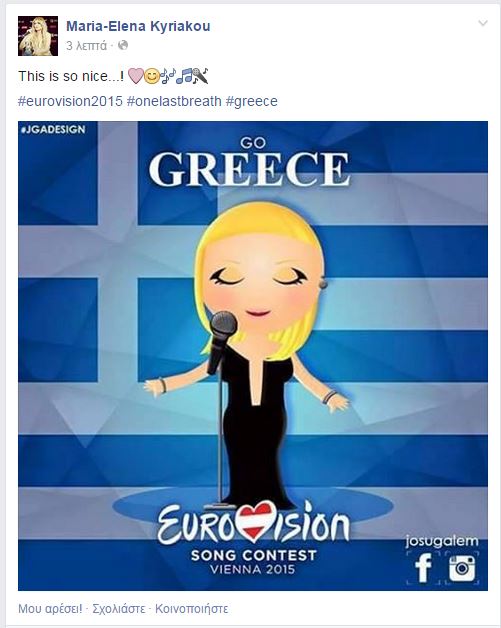 Η τραγουδίστρια Μαρία Έλενα Κυριάκου που θα μας εκπροσωπήσει στον φετινό διαγωνισμό της Γιουροβίζιον πόσταρε στο facebook ένα σκίτσο που της έφτιαξαν θαυμαστές της.