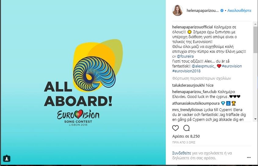 Η Έλενα Παπαρίζου, με ανάρτηση στον προσωπικό της λογαριασμό στο Instagram, ευχήθηκε “καλή επιτυχία” στην Κύπρο και την Ελένη Φουρέιρα.