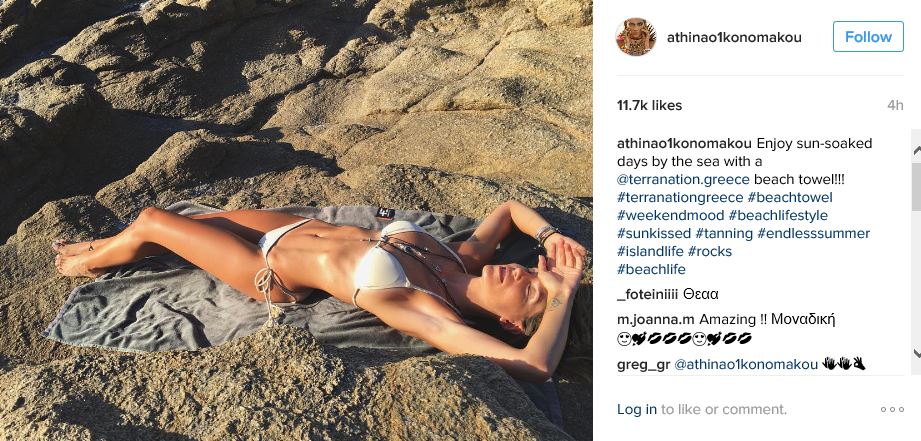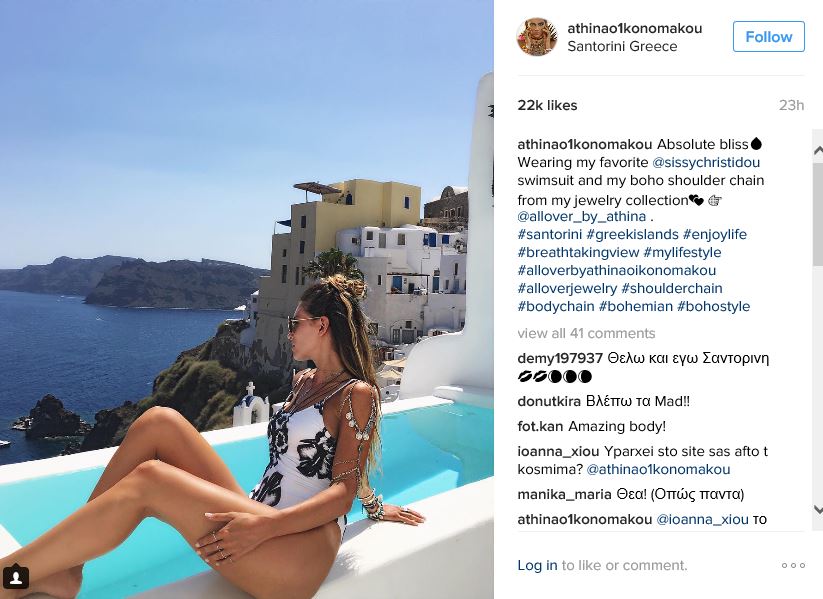 Η Αθηνά Οικονομάκου χαλαρώνει στη Σαντορίνη και ανήρτησε φωτογραφίες της με μπικίνι βάζοντας «φωτιά» στο Instagram.