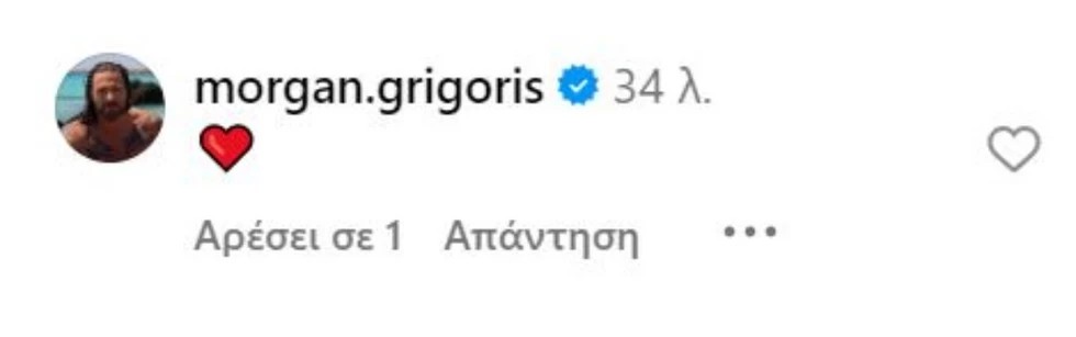 Ο Γρηγόρης θαύμασε την αγαπημένη του, αφήνοντας μια κόκκινη καρδιά στα σχόλια της ανάρτησης που έκανε.