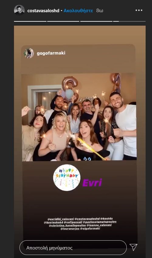 Η Ευρυδίκη Βαλαβάνη είχε χθες τα γενέθλια της και τα γιόρτασε μαζί με τον σύντροφό της Κωνσταντίνο Βασάλο και φίλους.