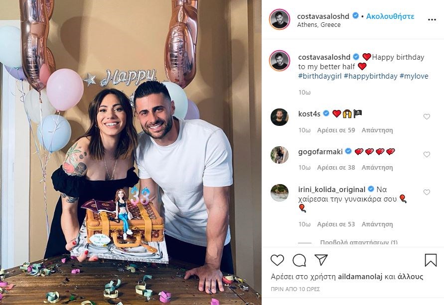 Ο Κωνσταντίνος Βασάλος ανέβασε και μία φωτογραφία στην οποία ποζάρει δίπλα από την αγαπημένη του που έγινε 33 ετών και έγραψε: “Χρόνια Πολλά στο άλλο μου μισό”.