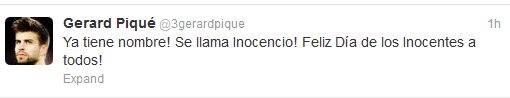 Ο γνωστός ποδοσφαιριστής γιορτάζοντας την Ισπανική μέρα του ψέματος ανήρτησε στον προσωπικό του λογαριασμό στο twitter ότι η γυναίκα του Σακίρα γέννησε πριν λίγες ώρες.