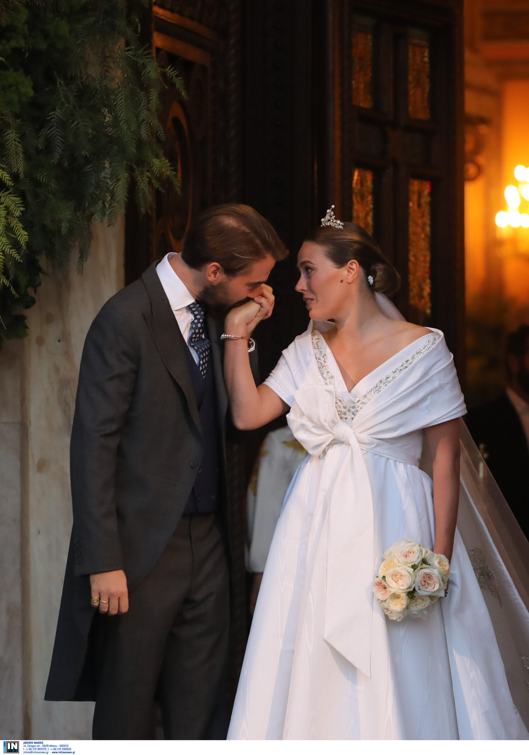 Μετά το μυστήριο, που διήρκεσε περίπου μία ώρα, οι νεόνυμφοι αντάλλαξαν στην είσοδο του ναού ένα τρυφερό φιλί. Παράλληλα, Φίλιππος και Νίνα χαιρέτισαν τον κόσμο που στεκόταν έξω από τη Μητρόπολη και αποχώρησαν με το αυτοκίνητο που τους περίμενε.
