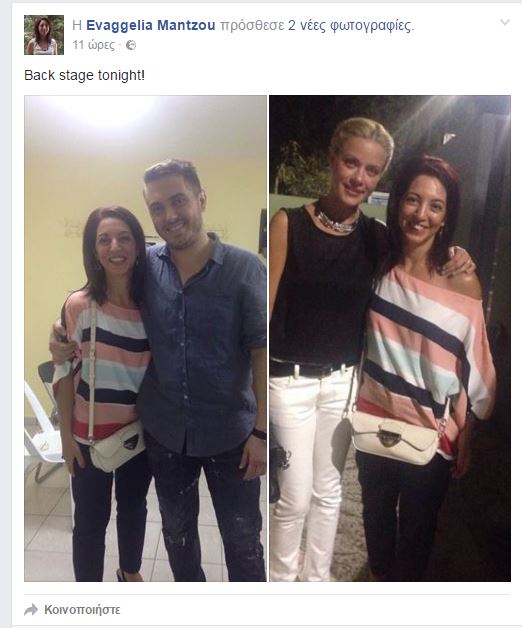 Μαζί με την ηθοποιό ήταν και η δικηγόρος Φορολογικού Δικαίου και δικηγόρος του Μιχάλη Χατζηγιάννη, Ευαγγελία Μάντζου, η οποία φωτογραφήθηκε μαζί με το ζευγάρι και ανέβασε τις εν λόγω φωτο στο facebook.