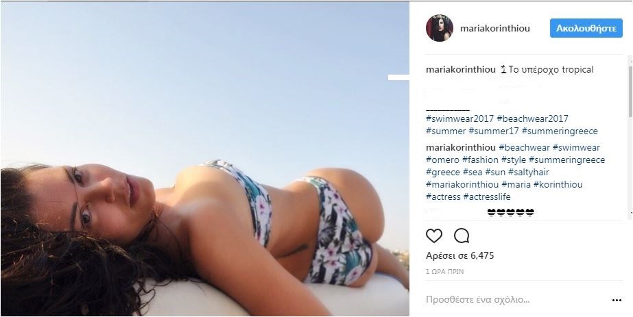 Η Μαρία Κορινθίου περνά καλοκαιρινές στιγμές χαλάρωσης και δείχνει να το απολαμβάνει.Η εκρηκτική μελαχρινή ηθοποιός ανέβασε μία φωτογραφία στον προσωπικό της λογαριασμό στο Instagram, στην οποία ποζάρει με ένα σέξι φλοράλ μπικίνι, και η εντυπωσιακή της σιλουέτα τραβά τα βλέμματα.