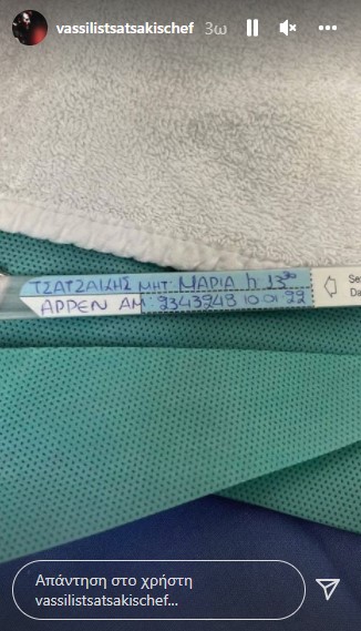 Συγκεκριμένα, ο Βασίλης Τσατσάκης ανέβασε μια φωτογραφία στην οποία φαίνεται το βραχιολάκι του νεογέννητου μωρού τους.