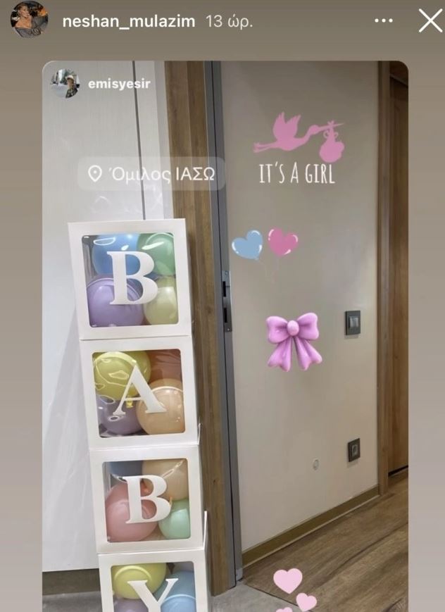 Σε αυτή φαίνονται τα μπαλόνια έξω από το δωμάτιο της Νεσχάν Μουλαζίμ και γράφει: «It’s a girl».