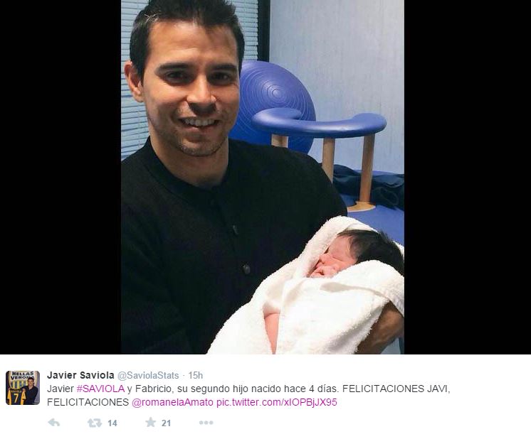 Στις 7 Ιανουαρίου στη Βερόνα γεννήθηκε ο Φαμπρίτσιο Σαβιόλα, το τέταρτο μέλος της οικογένειας του πρώην ποδοσφαιριστή του Ολυμπιακού.