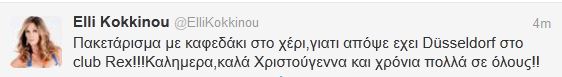 «Πακετάρισμα με καφεδάκι στο χέρι, γιατί απόψε έχει Düsseldorf στο club Rex!!!Καλημέρα, καλά Χριστούγεννα και χρόνια πολλά σε όλους!!»