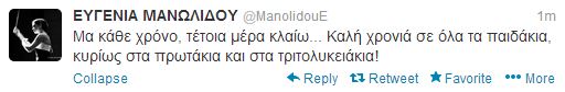 Όπως αποκάλυψε μέσω twitter η μαέστρος-παρουσιάστρια Ευγενία Μανωλίδου, η συγκεκριμένη μέρα της προκαλεί συγκίνηση. Όπως οι περισσότεροι γονείς έτσι και η κ. Μανωλίδου συνόδευσε σήμερα τα τρία της παιδιά στο σχολείο για την έναρξη της νέας σχολικής χρονιάς.