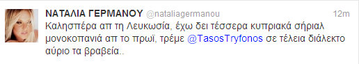 Η Ναταλία πριν από λίγο έγραψε στο twitter της: