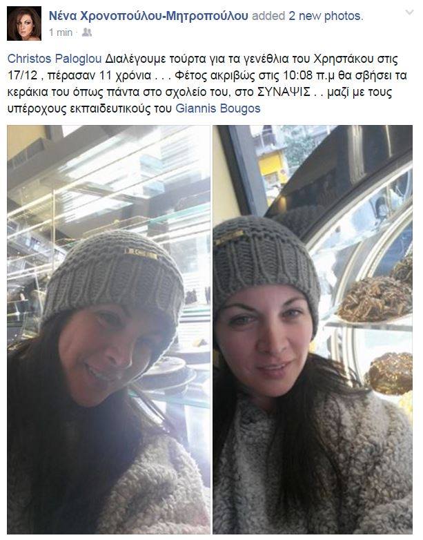 Η Νένα Χρονοπούλου χαμογελάει στο facebook γιατί διαλέγει τούρτα για τα γενέθλια του γιου της, Χρήστου.