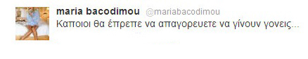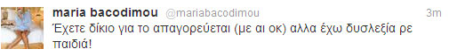 Η Μαρία Μπακοδήμου πριν από λίγες ώρες έγραψε στο twitter της:
