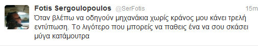 Τι μπορεί να συμβεί σε όσους δεν φορούν κράνος όταν οδηγούν μηχανή; Ο Φώτης Σεργουλόπουλος αναπτύσσει μια ενδιαφέρουσα θεωρία, την οποία μοιράζεται μαζί μας μέσω twitter!