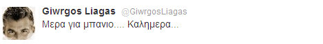 Ο Γιώργος Λιάγκας είναι χειμερινός κολυμβητής! Απολαμβάνει την θάλασσα τόσο το καλοκαίρι όσο και το χειμώνα! Σήμερα, που ο καιρός έβαλε τα καλά του, σκέφτεται να βουτήξει μάλλον! Τι έγραψε στο twitter του;