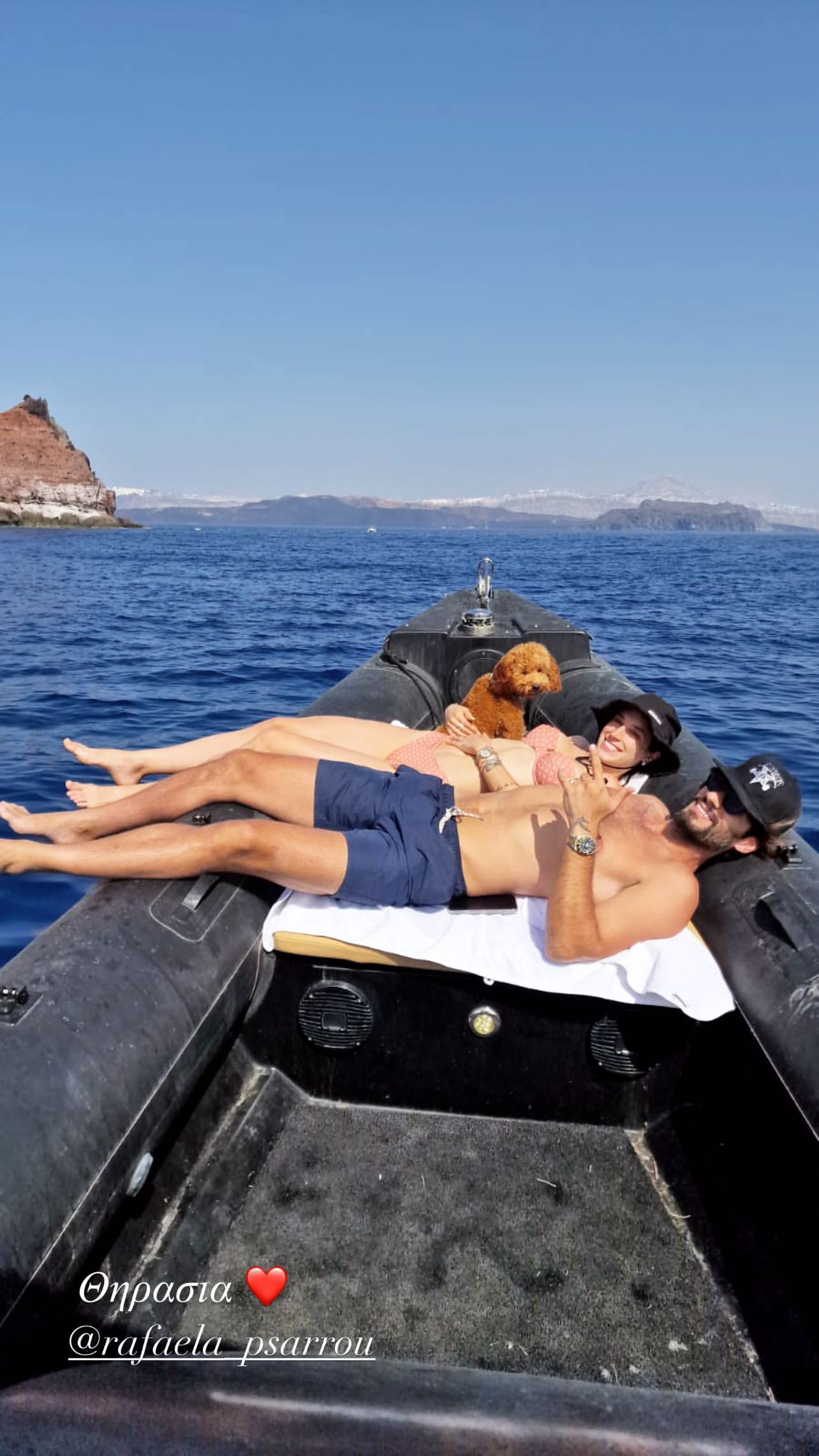 Την Θηρασιά επέλεξαν ο Γιώργος Καράβας και η σύζυγός του Ραφαέλα Ψαρρού, προκειμένου να περάσουν στιγμές χαλάρωσης έπειτα από μία απαιτητική επαγγελματική χρονιά. Το ζευγάρι που μετράει πολλά χρόνια κοινού βίου και έχει φέρει στον κόσμο δύο παιδιά, φαίνεται να είναι πιο ερωτευμένο από ποτέ.