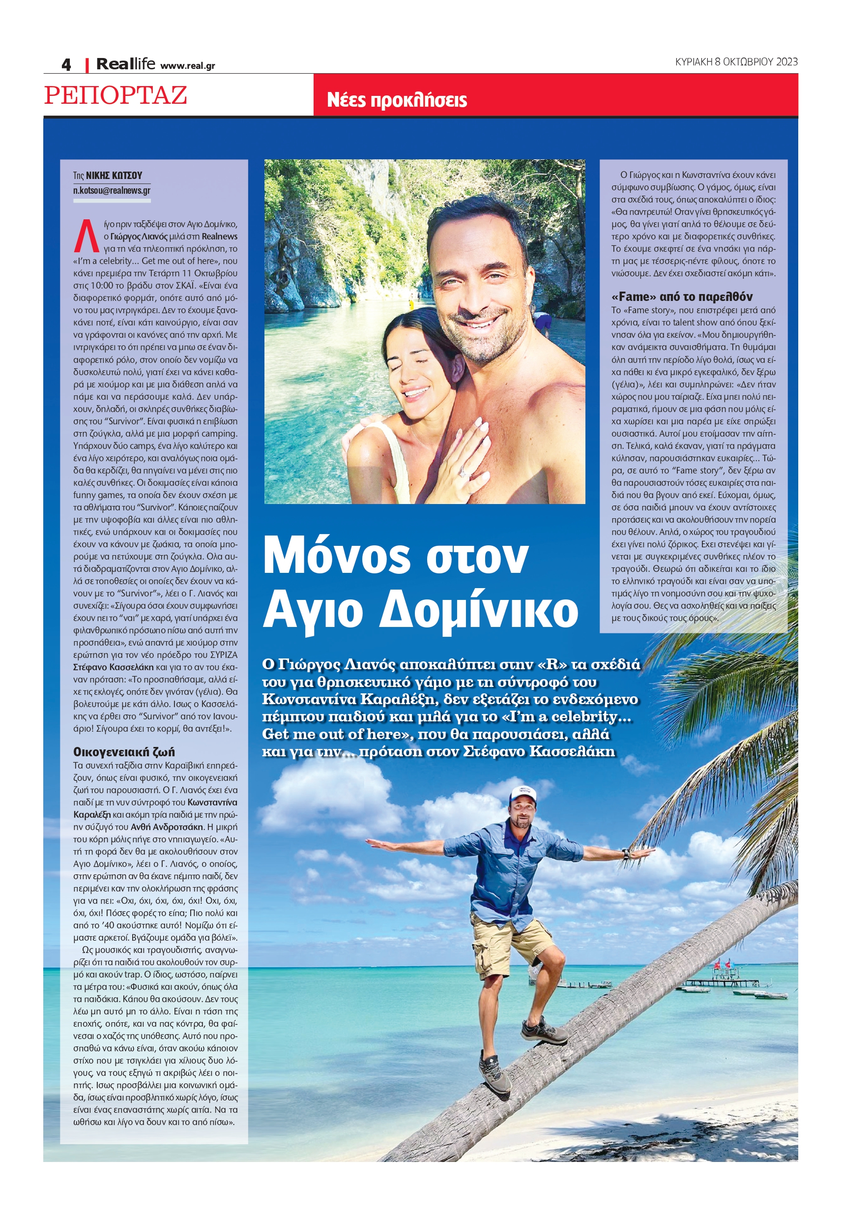 Ο Γιώργος Λιανός αποκαλύπτει στην «Realnews» τα σχέδιά του για θρησκευτικό γάμο με τη σύντροφό του Κωνσταντίνα Καραλέξη, δεν εξετάζει το ενδεχόμενο πέμπτου παιδιού και μιλά για το «I’m a celebrity… Get me out of here», που θα παρουσιάσει, αλλά και για την… πρόταση στον Στέφανο Κασσελάκη.