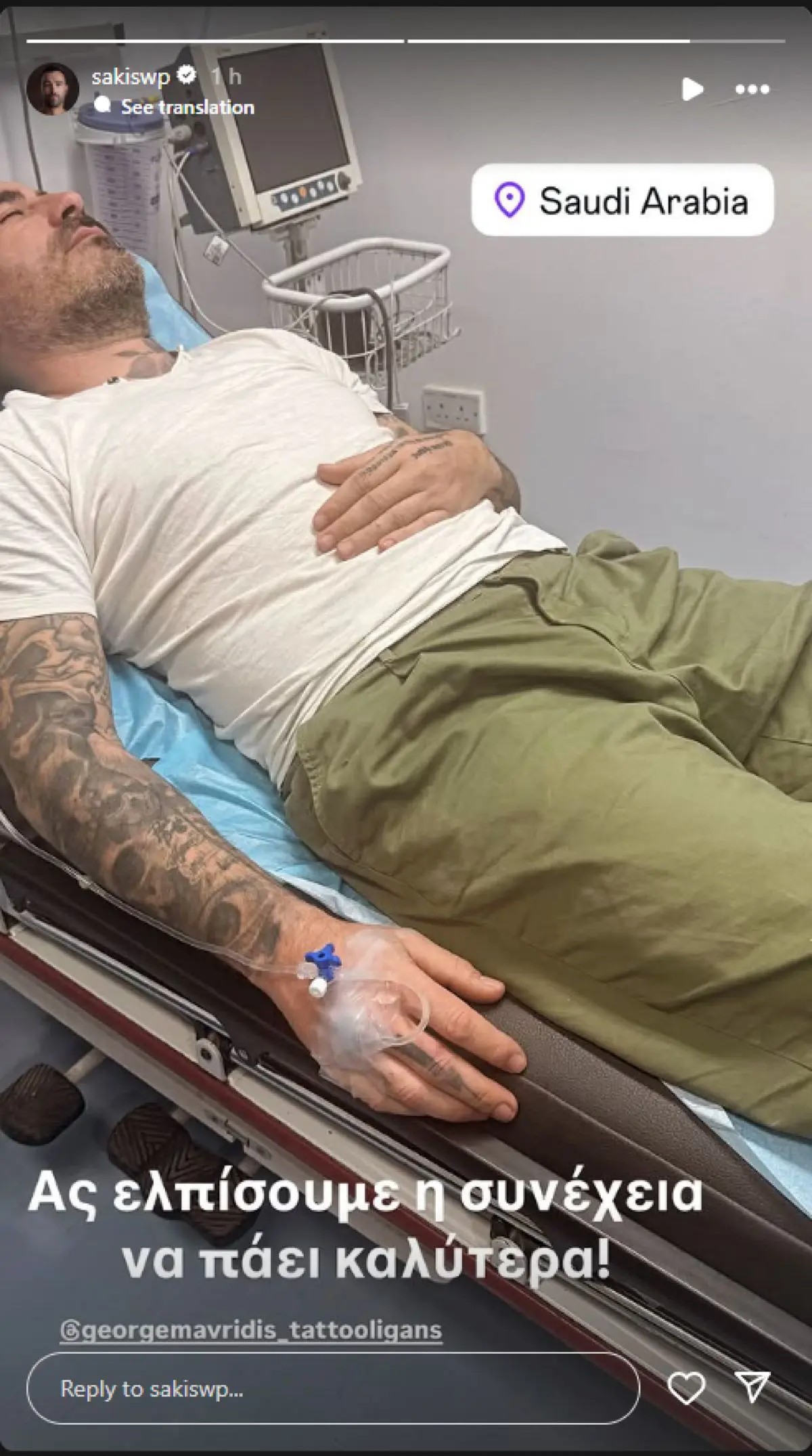 «Ας ελπίσουμε η συνέχεια να πάει καλύτερα», αφήνοντας να εννοηθεί ότι η κατάσταση της υγείας του φίλου του δεν είναι ανησυχητική, αλλά χρειάζεται προσοχή.